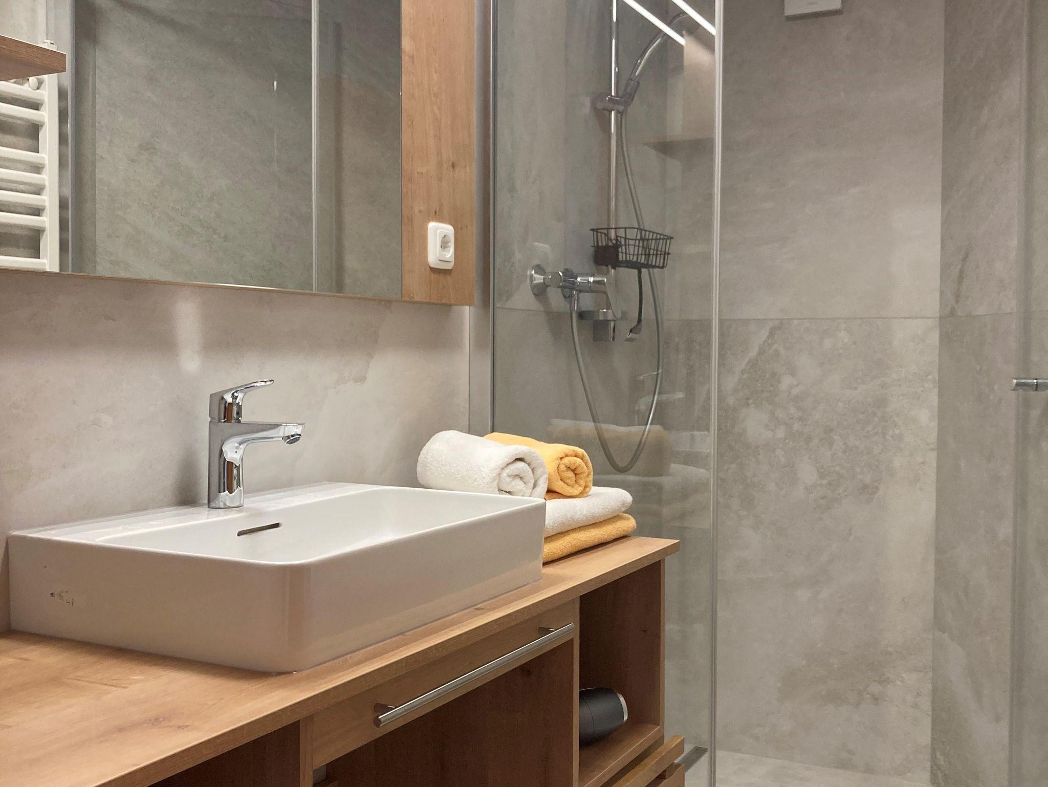 • 2 Bäder mit Dusche, Waschtisch und Föhn