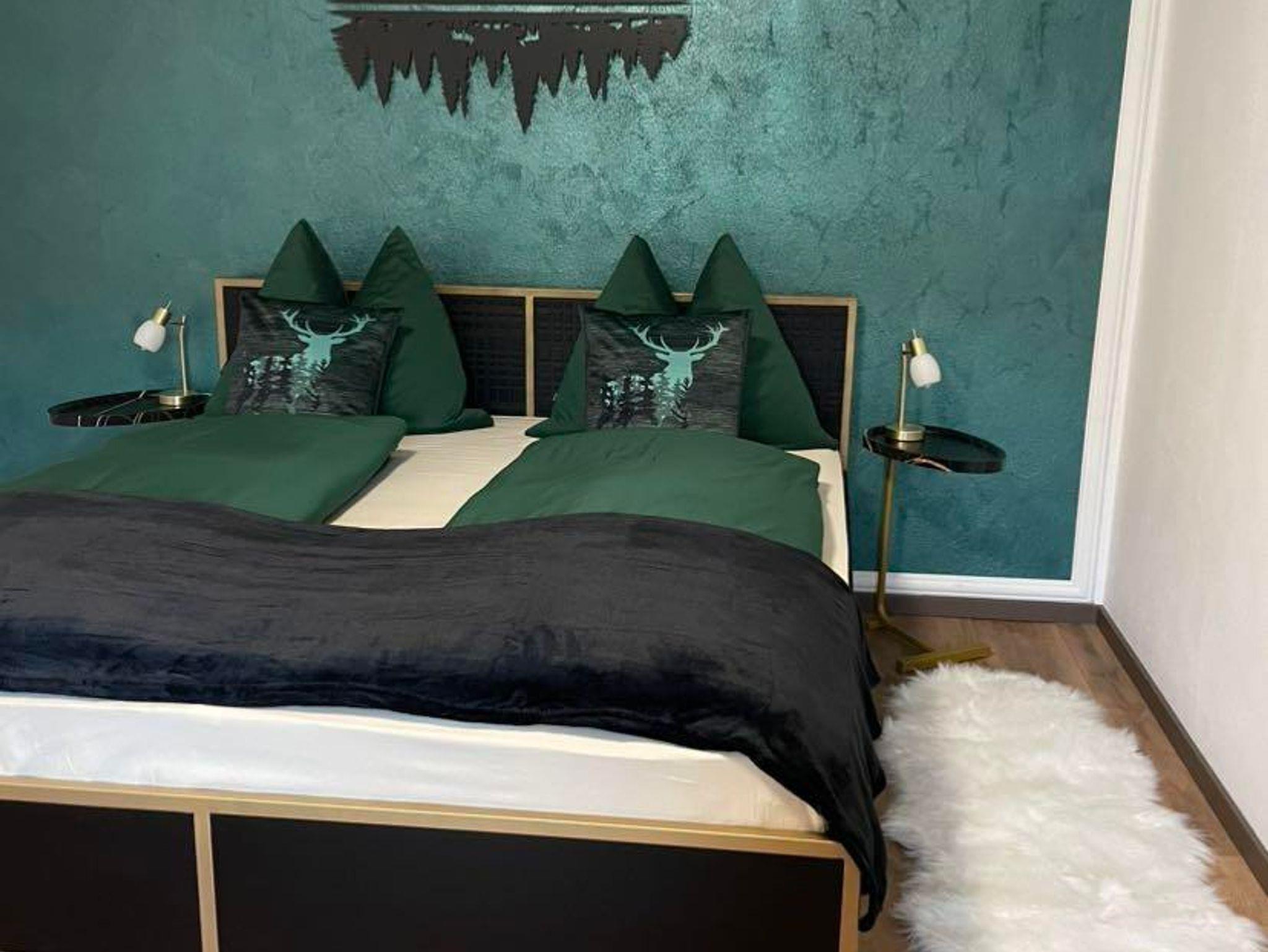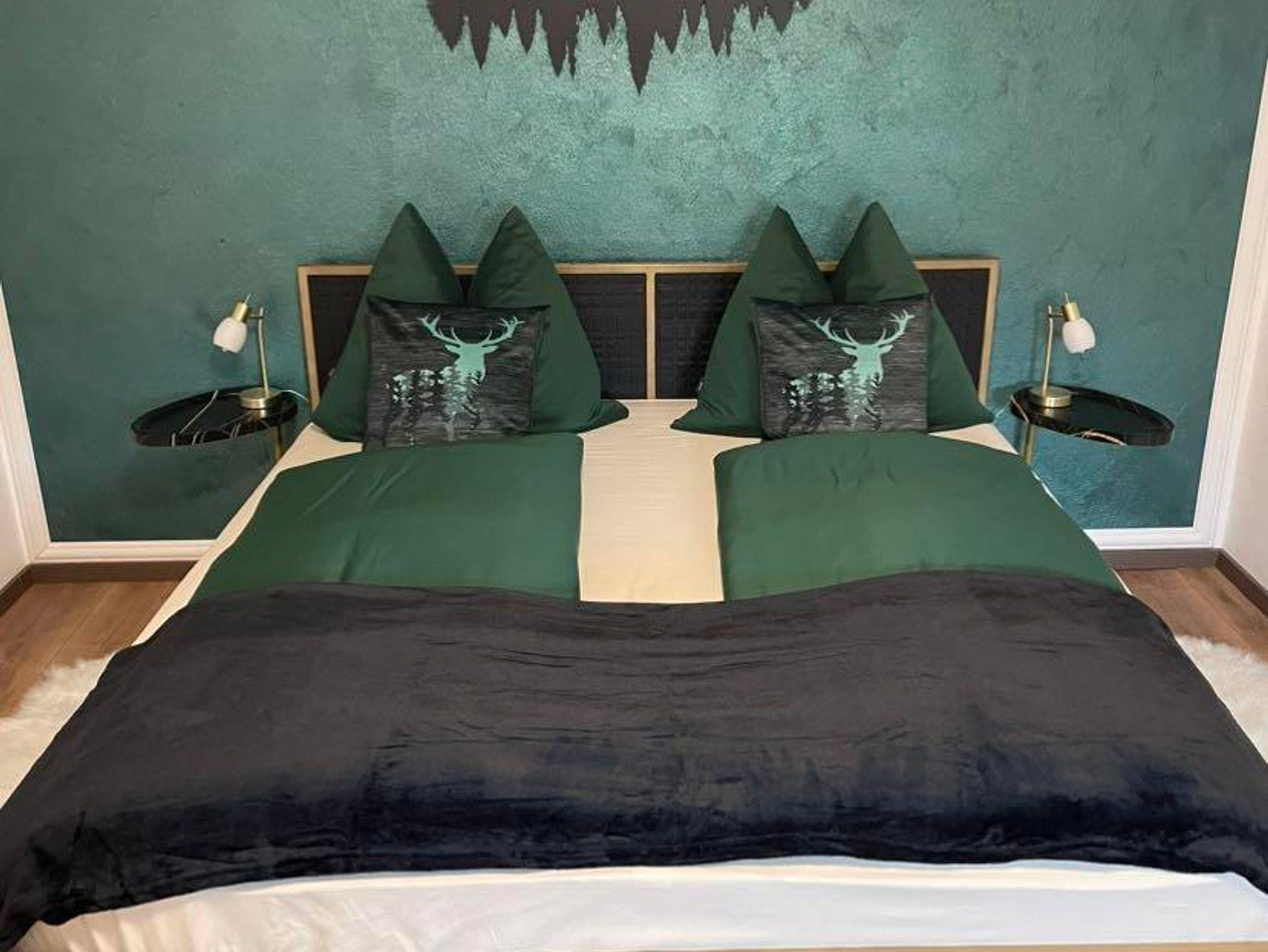 Die kleine Ferienwohnung ist ein stilvolles und funktionales Studio, in dem Schlaf- und Lounge-Bereich harmonisch miteinander verbunden sind. Der Raum ist geschickt gestaltet mit warmen Farben um eine gemütliche Atmosphäre zu schaffen.