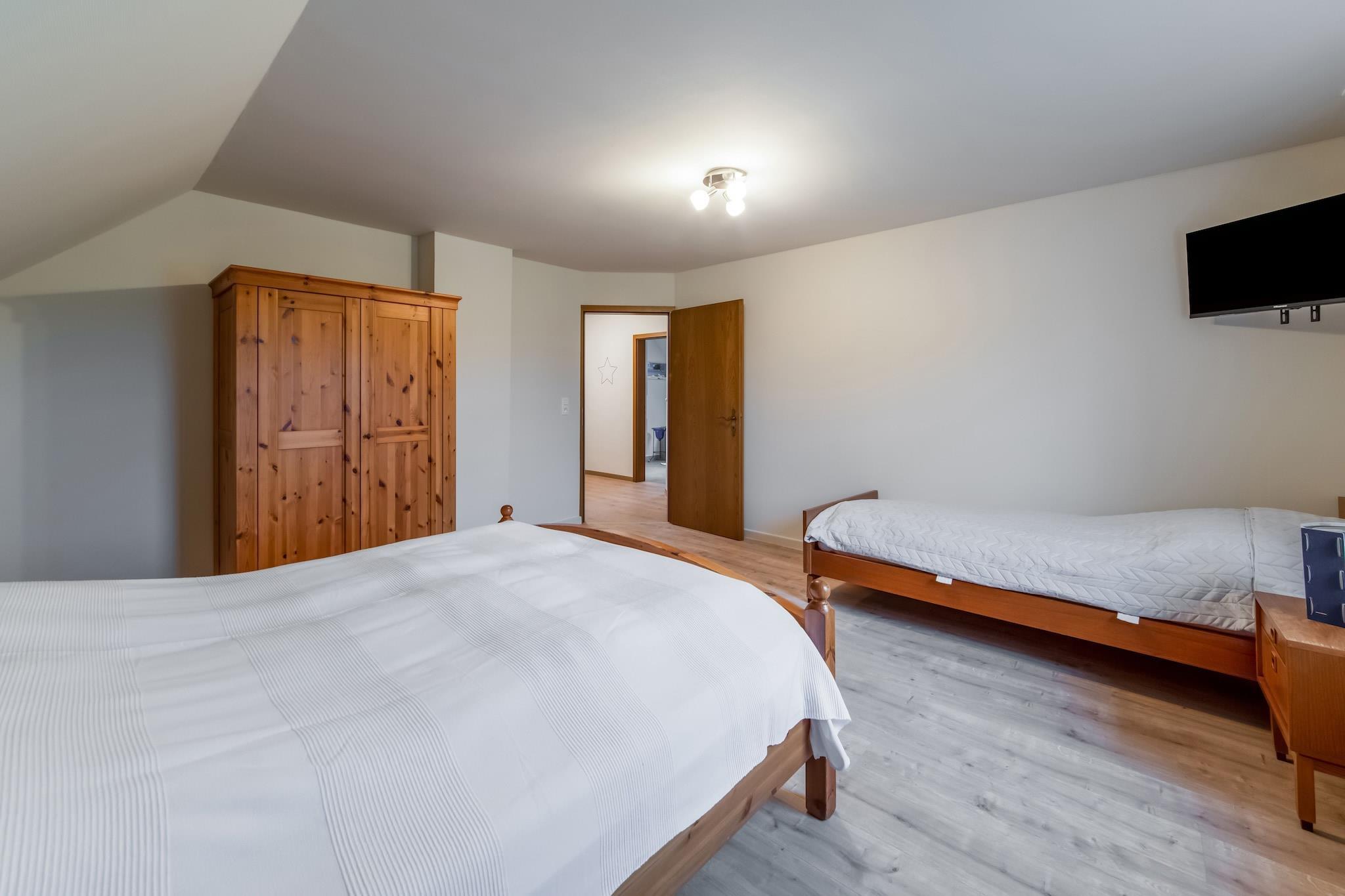 Dit aantrekkelijke vakantiehuis met 3 slaapkamers in Büllingen, vlakbij de Duitse grens, is ideaal voor gezinnen of vrienden. Het beschikt over een eigen terras, een infraroodsauna, een fitnessruimte en gratis wifi. De goed uitgeruste keuken is voorzien van een koffiezetapparaat, oven, magnetron en vaatwasser, en een wasmachine zorgt voor extra gemak. Ontspan met een kopje koffie op het terras, steek de barbecue aan of verken de Eifel, een ideale regio voor wandel- en fietstochten. De stad Malmedy ligt vlakbij en biedt restaurants en culturele charme. Het huis beschikt ook over een privéparkeerplaats, fitnessapparatuur en een ruime woonkamer met tv en eettafel. De slaapplaatsen bestaan uit tweepersoonsbedden en eenpersoonsbedden, en de badkamer is voorzien van een bad en een föhn. Huisdieren zijn welkom (maximaal 1, gratis na voorafgaande aanvraag). Dit huis combineert comfort, wellness en natuur voor een verkwikkend verblijf.