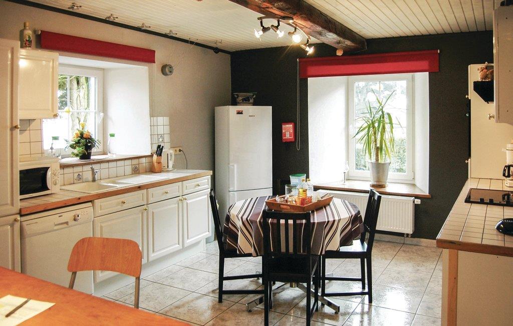 Dit vakantiehuis in Nadrin, in het grootste dorp van de gemeente Houffalize, is een volledig gerenoveerde boerderij met een eigen tuin van 3000 m2. Je kunt heerlijk ontspannen onder de fruitbomen op de aanwezige ligstoelen. Op het terras op het zuiden kun je van het vroege voorjaar tot de late zomer beschut van de zon genieten. Op de begane grond vind je de woonkamer met verschillende zithoeken, een halfopen, volledig ingerichte keuken en een aparte woonkamer met schuifdeuren naar het terras. Er is een bijkeuken met wasmachine en droger en een gastentoilet. Op de eerste verdieping vind je vier ruime en comfortabele slaapkamers. De kleinste slaapkamer heeft een stapelbed. De twee badkamers bevinden zich ook op deze verdieping. We hebben ook aan je comfort gedacht als je met kleine kinderen reist. Er zijn drie kinderbedjes, baby- en peuterspeelgoed en de tuin is volledig omheind. De spijlen van de tuinpoort aan de straatkant zijn ook heel dichtbij. De opblaasbare whirlpool in de tuin kan op verzoek en tegen betaling gebruikt worden. De afdekking hiervan is vastgemaakt met een ritssluiting, wederom voor de veiligheid van zeer jonge gasten. Oudere kinderen kunnen naar hartenlust voetballen en stoom afblazen. Er is genoeg ruimte hiervoor. Je beschikt ook over een zeer goede WLAN-verbinding. Het vakantiehuis is een ideale accommodatie voor een gezinsvakantie met kinderen.