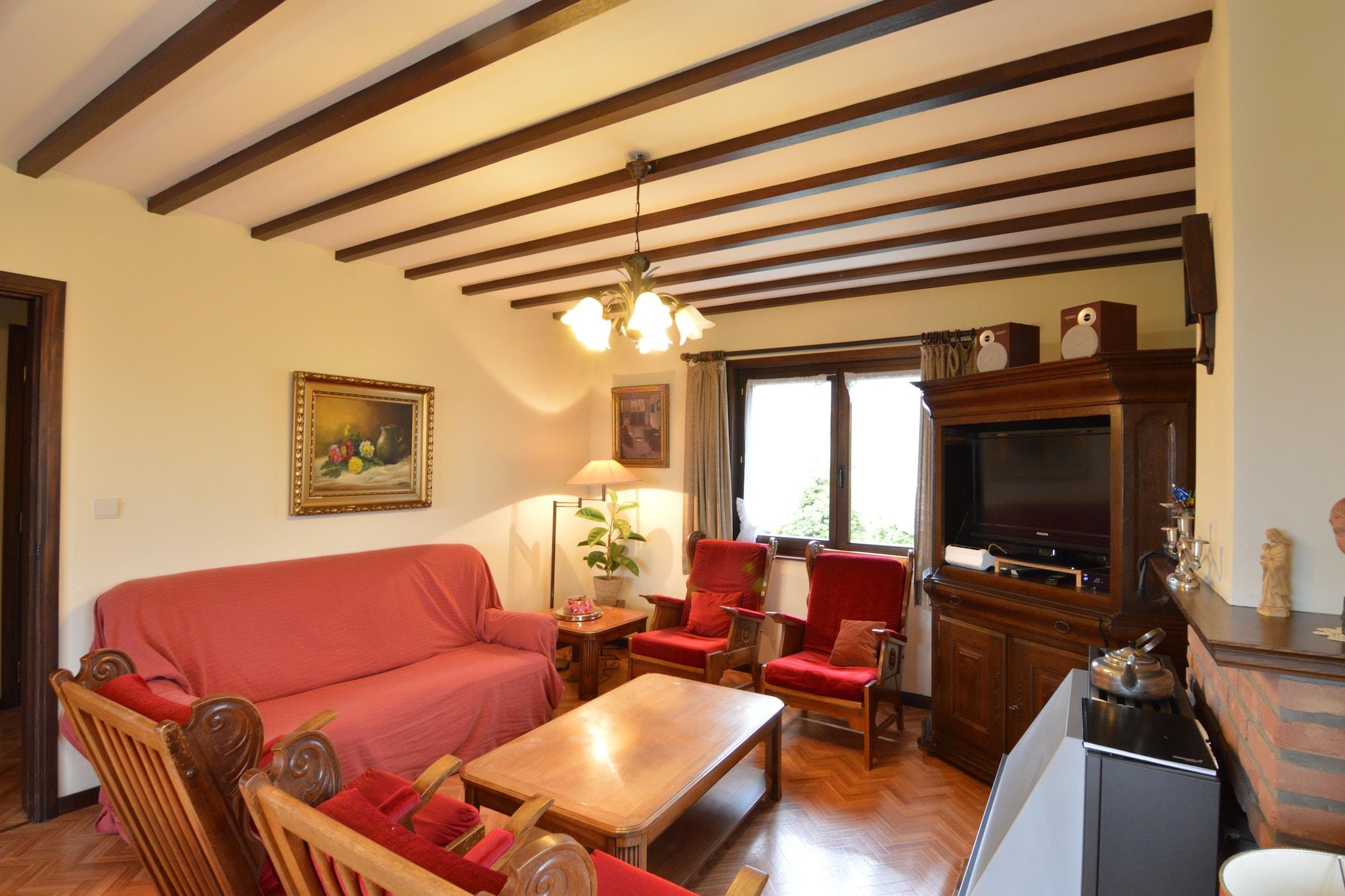 Parterre: (hal, keuken(fornuis(4 kookplaten), oven, magnetron, afwasmachine, koelkast), woon/eetkamer(TV(kabel), open haard, DVD-speler), slaapkamer(2x 1-pers. bed, wastafel), slaapkamer(2x 1-pers. bed), slaapkamer(2-pers. bed, wastafel), badkamer(bad met douche, 2x wastafel, toilet, bidet), toilet) Souterrain: (toilet, recreatieruimte(tafeltennistafel, tafelvoetbal, biljart), garage(vriezer, wasmachine), douche, zonnebank / solarium, sauna, fitnesstoestellen) verwarming(gas), terras(privé), tuin, tuinmeubilair, BBQ, 2x fietsen beschikbaar, kinderbed, kinderstoel