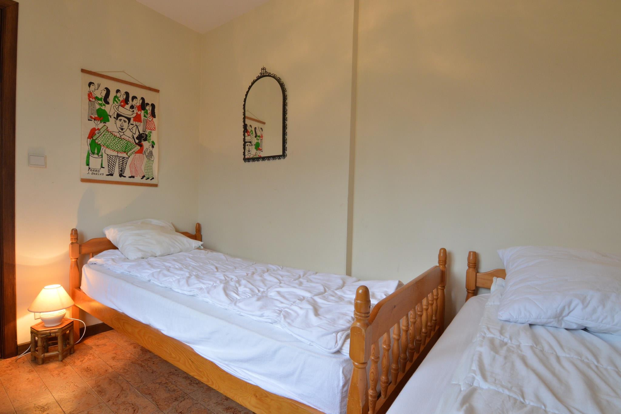 In dit ruime, vrijstaande vakantiehuis ben je voorzien van de comfort van een sauna, zonnebank, een tuin en prachtig uitzicht over het dal van de Belgische Ardennen. Met 3 complete slaapkamers, een badkamer met douche en een eigen terras is deze vakantiewoning ideaal voor 6 personen. _x000D_ _x000D_ Ook bezit het vakantiehuis een tuin met terras, barbecue en 2 fietsen om er eens lekker op uit te gaan. Er is namelijk veel te ontdekken in de omgeving. Zo kun je schitterende wandeltochten maken. Ook de hellingen rondom het thuis zijn leuk om met de ski's vanaf te gaan. In de omgeving zijn prachtige steden als Houffalize, La Roche, Durbuy en Bastogne die eigenlijk allemaal een bezoekje waard zijn, dankzij de culturele bezienswaardigheden._x000D_ _x000D_ De kelder van het vakantiehuis vind je een recreatieruimte met een tafeltennistafel, tafelvoetbal en een biljarttafel. Daarna kun je heerlijk ontspannen in de sauna of onder de zonnebank/solarium. Ook is er ruimte voor een kinderbed en kinderstoelen.