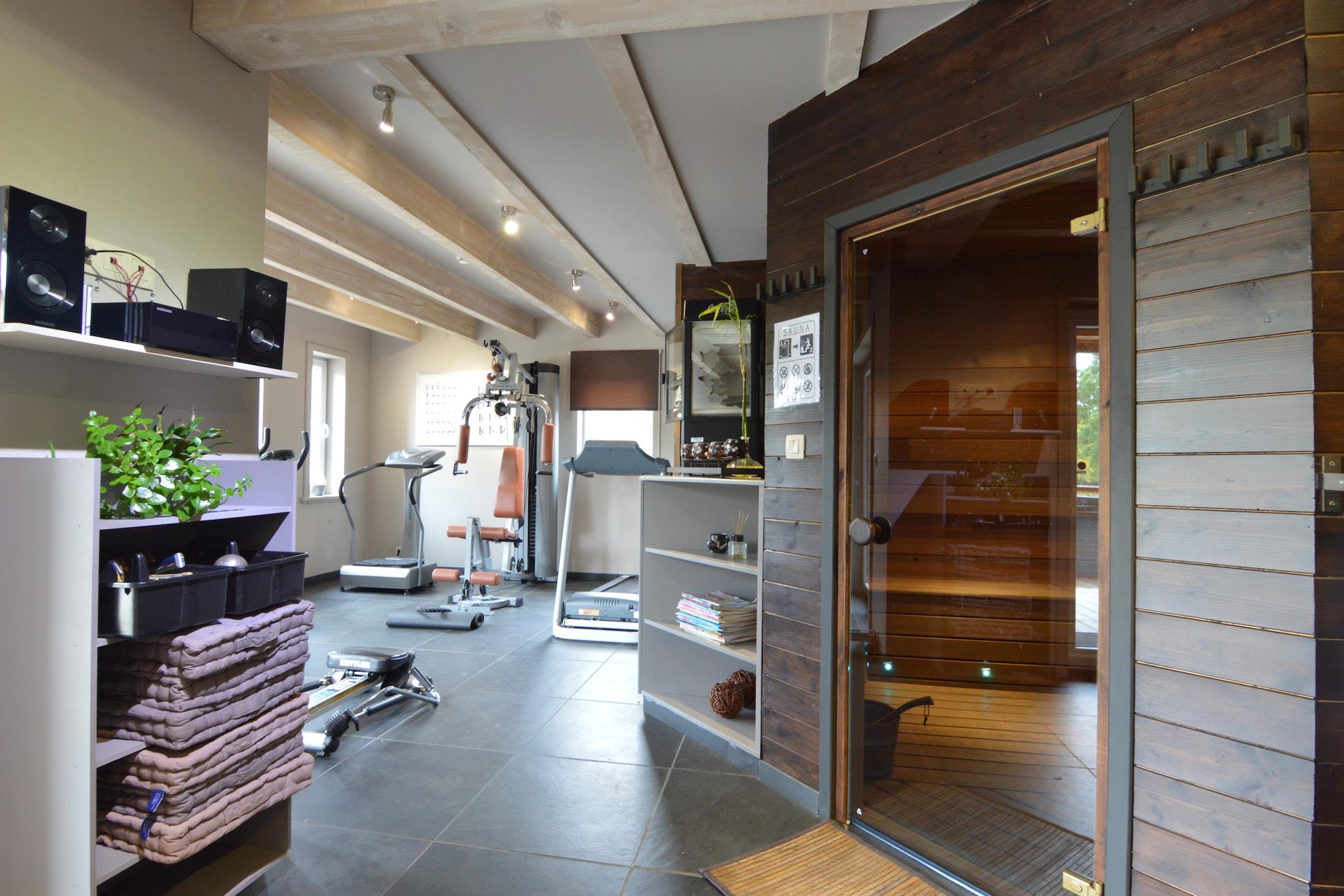Parterre: (hal(toilet), hal, zitkamer(TV(satelliet), open haard, DVD-speler, radio, CD-speler, stereo-installatie, balkon of terras, verwarming(CV), airconditioning), eetkamer(balkon of terras, airconditioning, 2x kinderstoel), keuken(fornuis(keramisch), koffiezetapparaat(filtermaling, pads), oven(grilloven), 2x magnetron, 2x afwasmachine, 2x koel-/vriescombinatie, airconditioning, BBQ), slaapkamer met badkamer(2-pers. bed, ledikant, douche, wastafel, toilet, airconditioning, terras), slaapkamer met badkamer(2x 1-pers. bed, TV, bad met douche, wastafel, toilet, airconditioning), slaapkamer met badkamer(stapelbed, TV, bad met douche, wastafel, toilet, airconditioning), toilet, berging(wasmachine), parking) Op de 1e etage: (slaapkamer met badkamer(1-pers. bed, 2-pers. bed, douche, wastafel, toilet, airconditioning), slaapkamer met badkamer(2-pers. bed, ledikant, bad met douche, wastafel, toilet, airconditioning), slaapkamer met badkamer(stapelbed, 3-pers. stapelbed, douche, 2x wastafel, toilet, airconditioning), overloop(balkon, airconditioning, biljart)) Souterrain: (slaapkamer met badkamer(2-pers. bed, 2x wastafel), fitnessruimte(stereo-installatie, airconditioning, terras, fitnesstoestellen), recreatieruimte(TV, airconditioning, tuin), relaxruimte(stereo-installatie, douche, sauna, airconditioning, terras)) buitenkeuken, bubbelbad, terras, tuin, tuinmeubilair, parking, vijver, zwembad(privé, verwarmd, overdekt, 8 x 4 m., geopend van Apr t/m Okt), jeu de boules baan, tafeltennistafel, Oplaadpaal voor elektrische auto’s