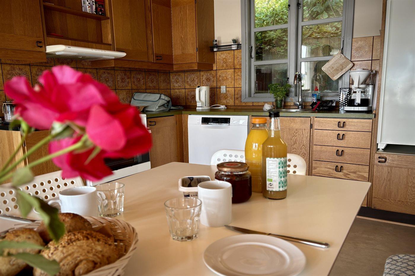 De keuken is uitgerust met koelkast Er zijn 4 keramische kookplaten, heteluchtoven en vaatwasser.