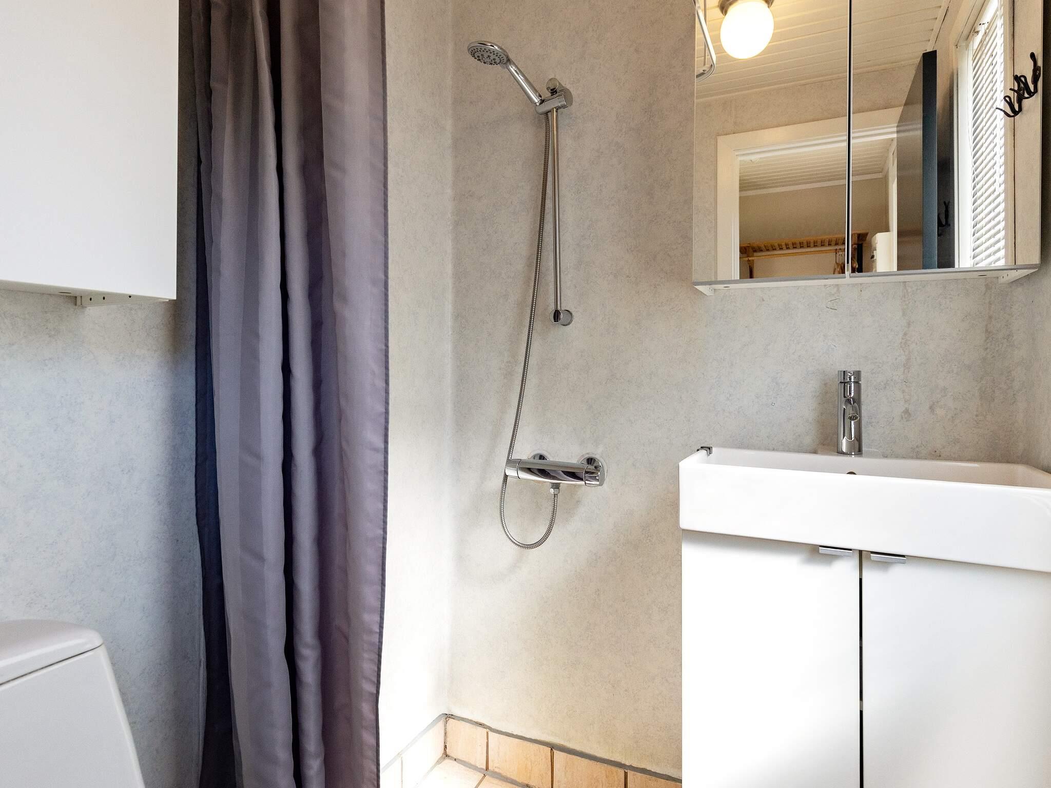 Ferienhaus auf einem 1.500 m² großen Naturgrundstück mit Rasenfläche. Das helle Ferienhaus hat einen 45 m² großen, offen kombinierten Küchen-/Aufenthaltsbereich für das Familienleben. Die Kücheneinrichtung ist von 2017 und beinhaltet u.a. ein Ceranfeld, einen separaten Backofen und einen Geschirrspüler. Außerdem stehen im Haus zwei Schlafzimmer, ein Bad und eine Eingangsdiele mit Garderobe zur Verfügung. Erwärmt wird das Haus mittels elektrischer Heizkörper, Holzofen und stromsparender Wärmepumpe, die bei jedem Wetter für ein angenehmes Innenklima sorgt. Eine große Terrassenfläche umgibt das Haus. Für Kinder sind Schaukel, Sandkasten, Kinderbett und Hochstuhl vorhanden.