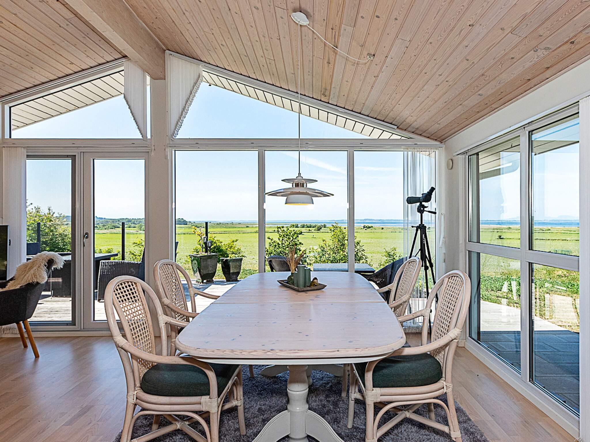 Gemütliches und schönes Ferienhaus mit herrlichem Wasserblick auf einem großen Grundstück im idyllischen Virksund. Entspannen Sie sich und genießen Sie die Aussicht im schönen hellen Wohnzimmer des Hauses, das wie der Rest des Hauses zum Dach hin offen ist, oder genießen Sie die schönen und gemütlichen Terrassen auf 3 Seiten des Hauses, darunter ein schöner überdachter Bereich. Sie können immer einen Unterschlupf oder einen Platz in der Sonne am Haus finden. Es gibt viel Platz für echte Urlaubsgemütlichkeit, sowohl drinnen als auch draußen. Schöne, offene und sehr helle Wohnküche mit Holzofen, einladende Essecke mit bester Aussicht auf Landschaft und Natur und eine gemütliche Sofagruppe mit TV. Am anderen Ende des Hauses befinden sich alle 3 Schlafzimmer und das Hausbad rund um den Eingang/Flur. Zwei der Schlafzimmer haben Doppelbetten, das letzte Zimmer hat ein Einzelbett und ein Etagenbett. Das Ferienhaus liegt auf einem schönen großen Grundstück mit viel Platz und vielen Möglichkeiten zum Spielen und Toben. Sowohl das Haus als auch der Garten laden zu purer Entspannung ein. Das Haus liegt in fußläufiger Entfernung zum Wasser in einem schönen Ferienhausgebiet. Zum Haus gehört auch ein schöner großer, offener Carport. Nicht für Jugend- oder Bastelgruppen geeignet. Nur für Ferienaufenthalte.
