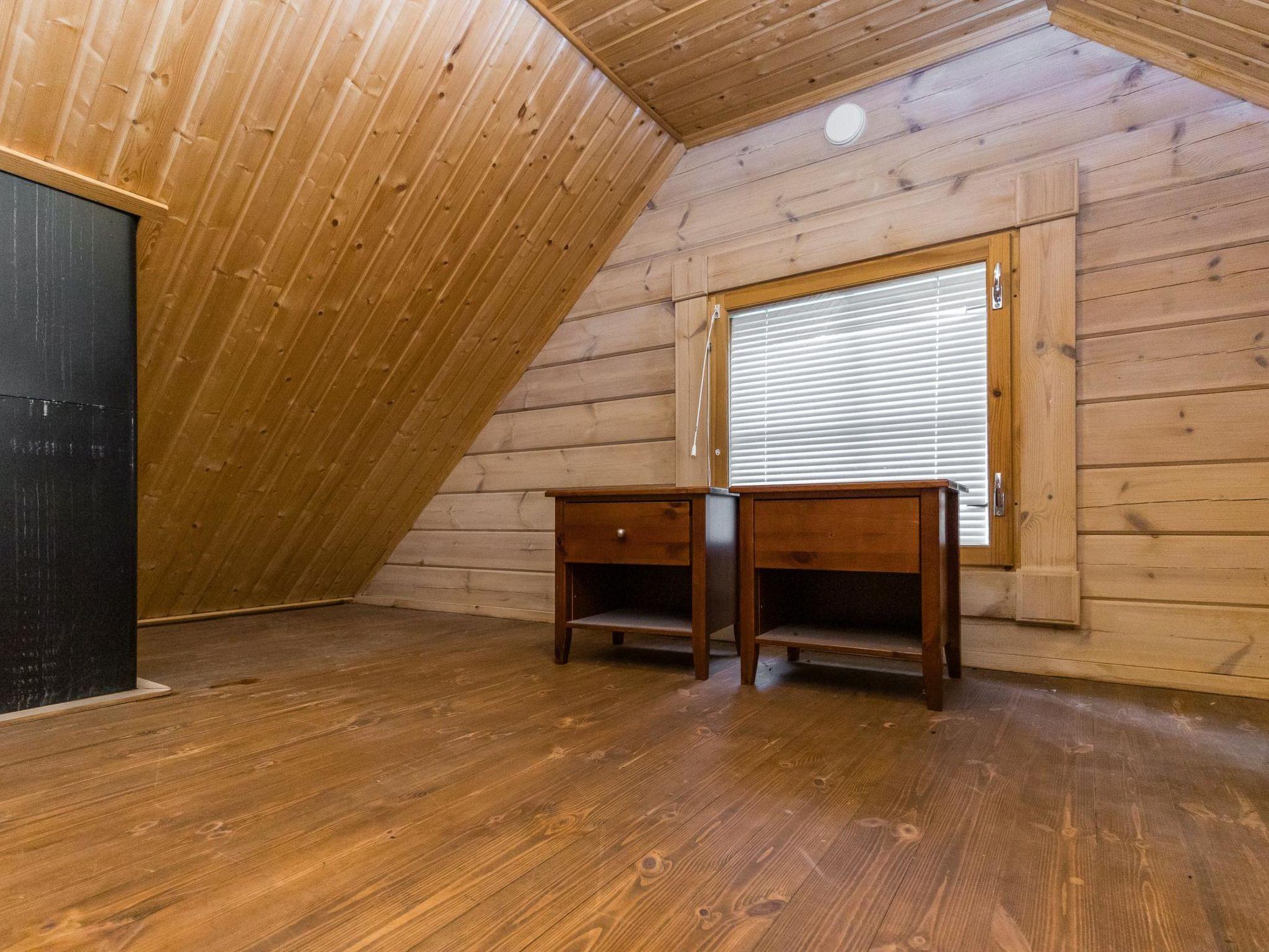 On the beach, there is a separate sauna building with a wood-heated sauna stove, a washing room, a living area, and a loft. Terrace facing the lake. If needed, you can sleep in the loft of the sauna building (note the steep ladder). The living area has a sink and a workspace.