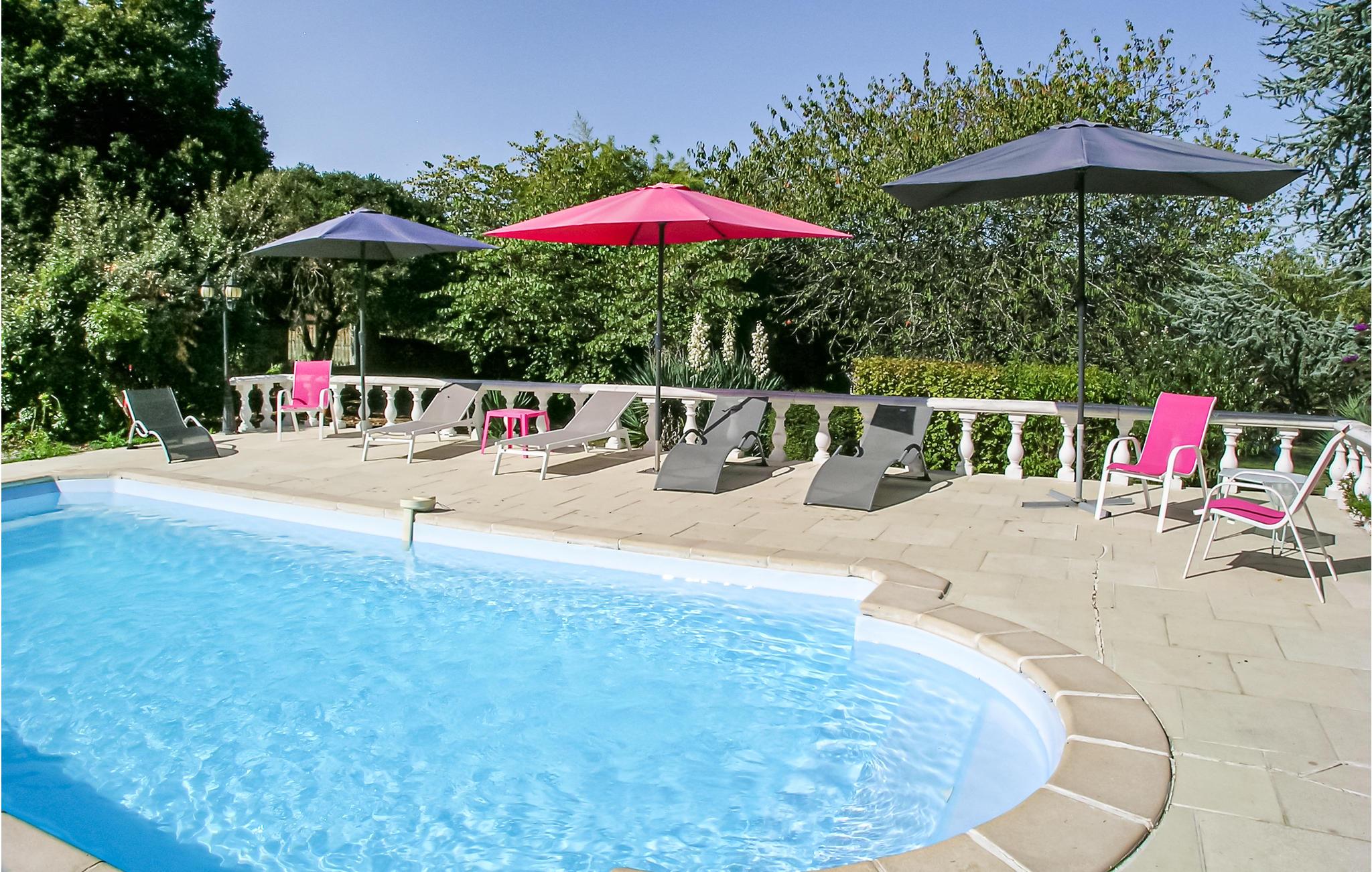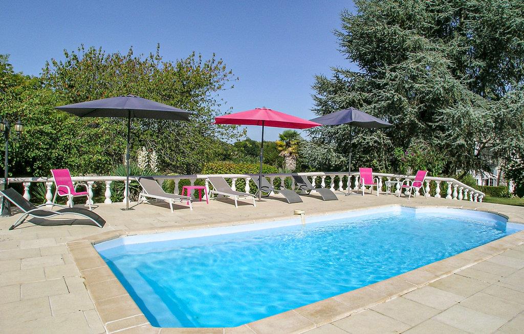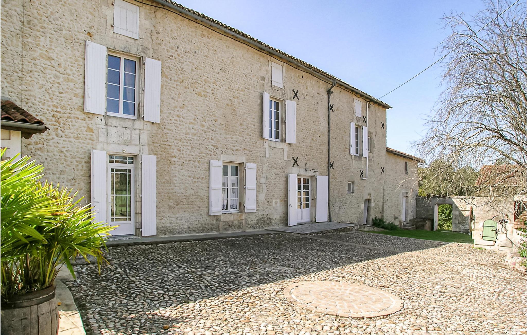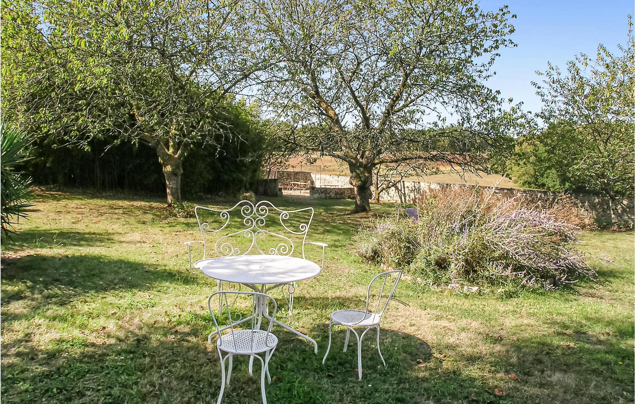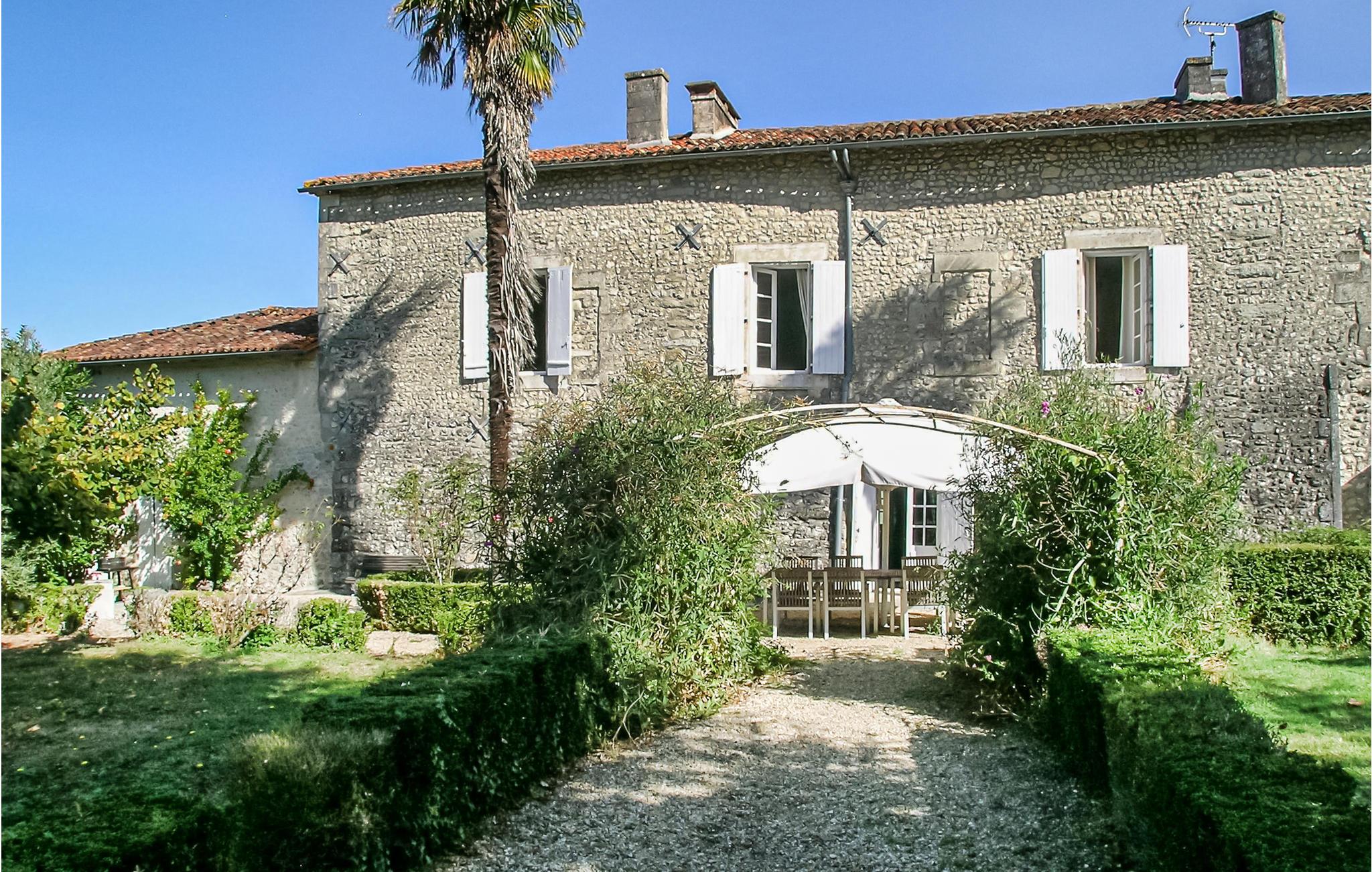 Een typische stenen boerderij van drie verdiepingen met ruime kamers en hoge plafonds, een open haard en veel zichtbare balken. Het heeft een binnenplaats aan de voorzijde en een omheinde tuin met gazon aan de achterzijde, met zwembad en terras met ingebouwde barbecue. Een korte wandeling brengt u naar uw eigen vismeer. Het beroemde autodorp Monmoreau met alle gemakken en een openbaar zwembad ligt op ongeveer 4 km afstand. Het kasteel van Villebois, het dorp Aubeterre en de marktstad Ribérac liggen allemaal binnen 20 km. Dagtochten naar Bordeaux en de Atlantische Oceaan. Bezoek Aubeterre-sur-Dronne (12 km), dat officieel een van de mooiste dorpen van Frankrijk is. Vliegvelden in Bergerac en Bordeaux.