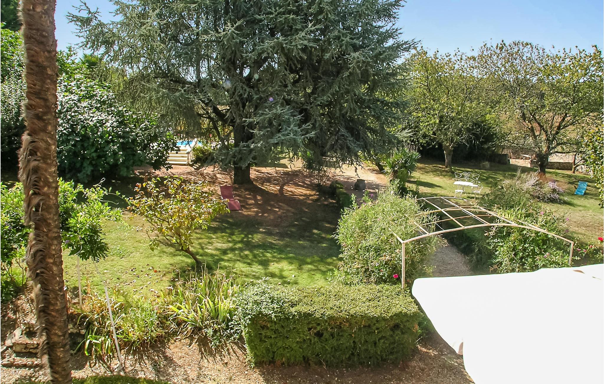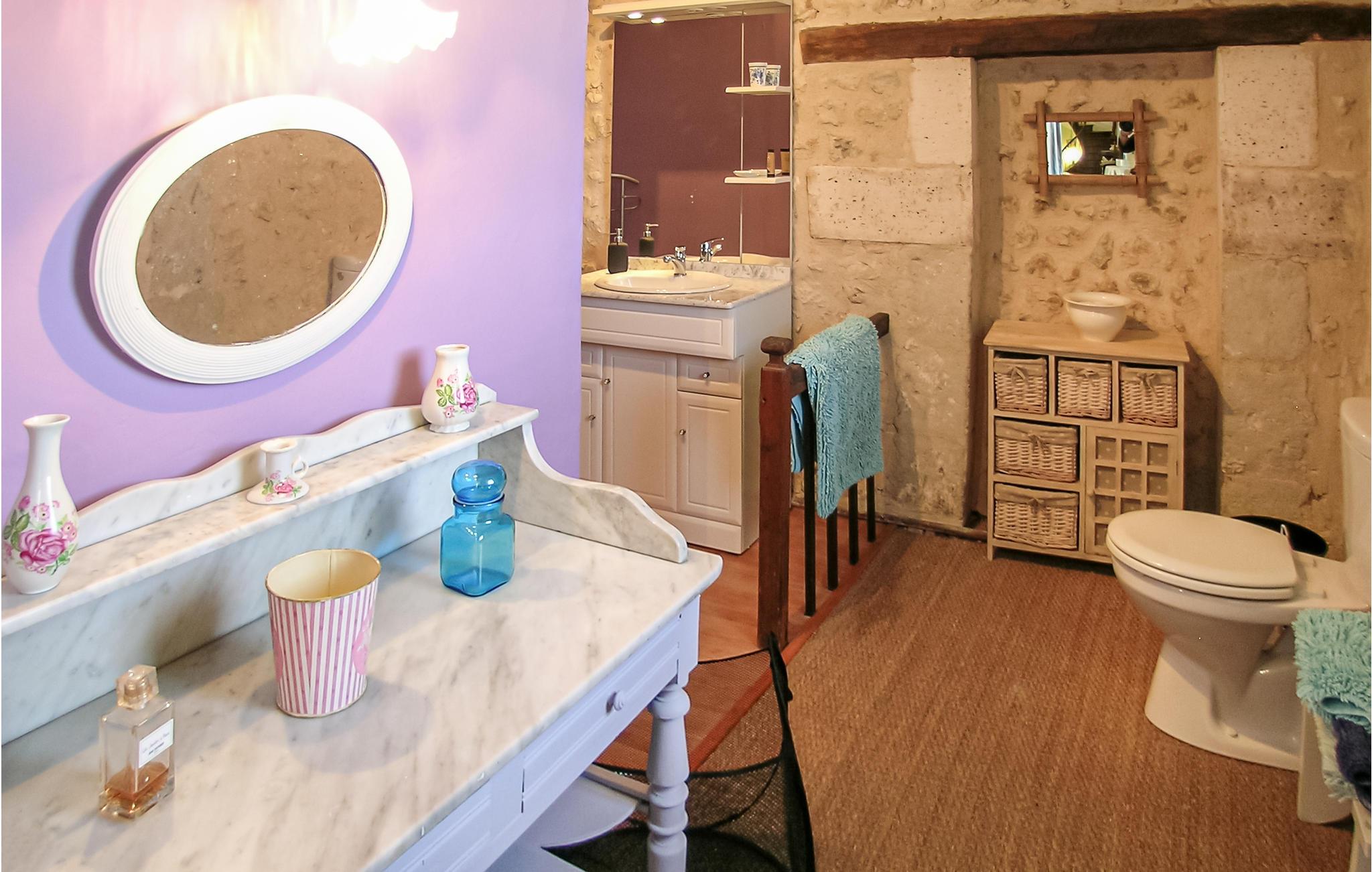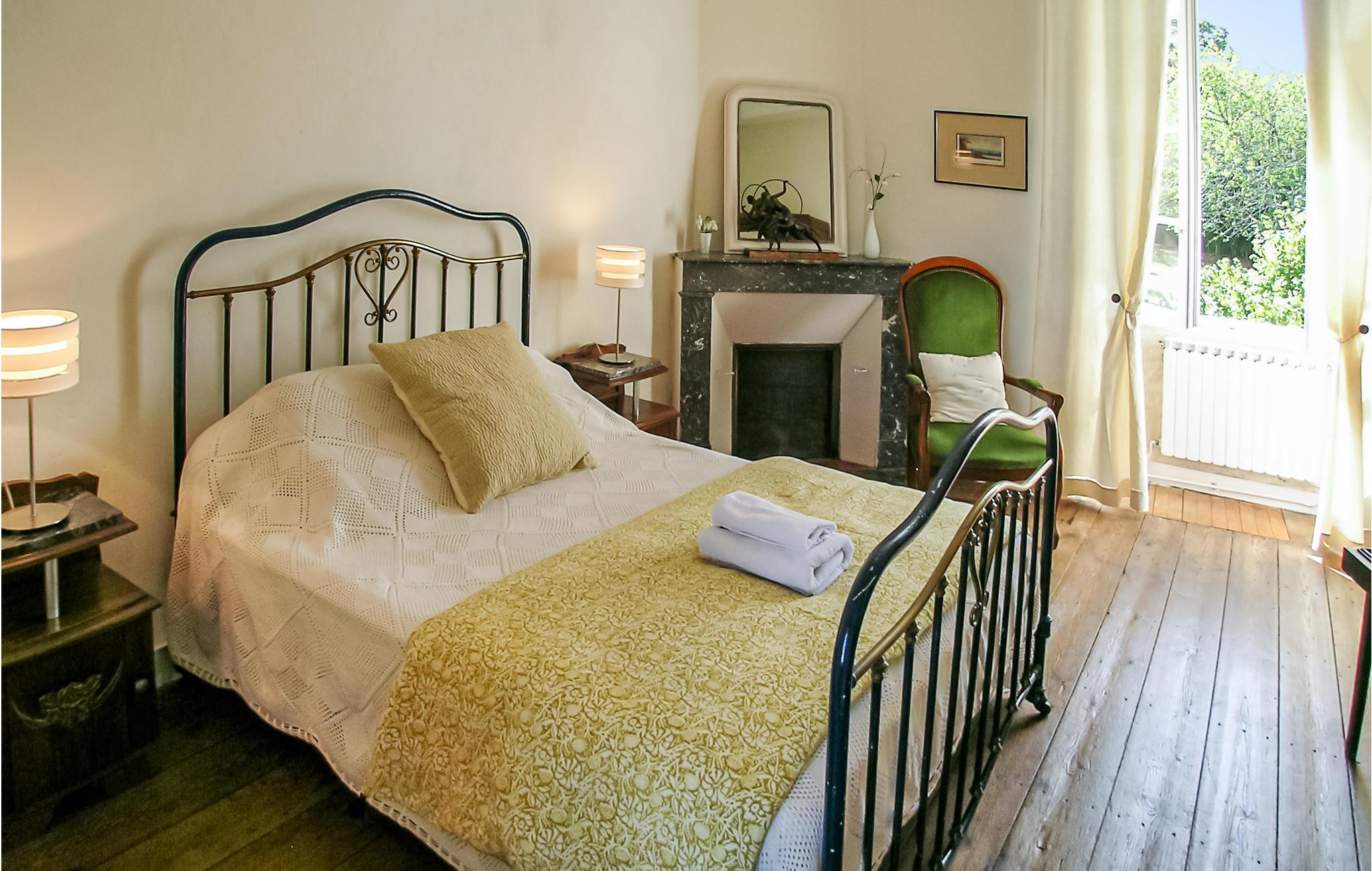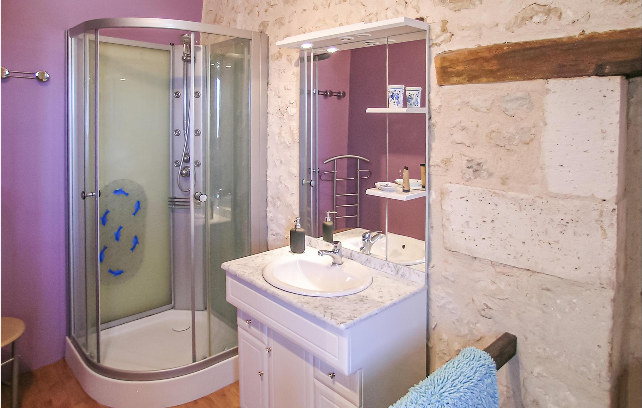 Een typische stenen boerderij van drie verdiepingen met ruime kamers en hoge plafonds, een open haard en veel zichtbare balken. Het heeft een binnenplaats aan de voorzijde en een omheinde tuin met gazon aan de achterzijde, met zwembad en terras met ingebouwde barbecue. Een korte wandeling brengt u naar uw eigen vismeer. Het beroemde autodorp Monmoreau met alle gemakken en een openbaar zwembad ligt op ongeveer 4 km afstand. Het kasteel van Villebois, het dorp Aubeterre en de marktstad Ribérac liggen allemaal binnen 20 km. Dagtochten naar Bordeaux en de Atlantische Oceaan. Bezoek Aubeterre-sur-Dronne (12 km), dat officieel een van de mooiste dorpen van Frankrijk is. Vliegvelden in Bergerac en Bordeaux.