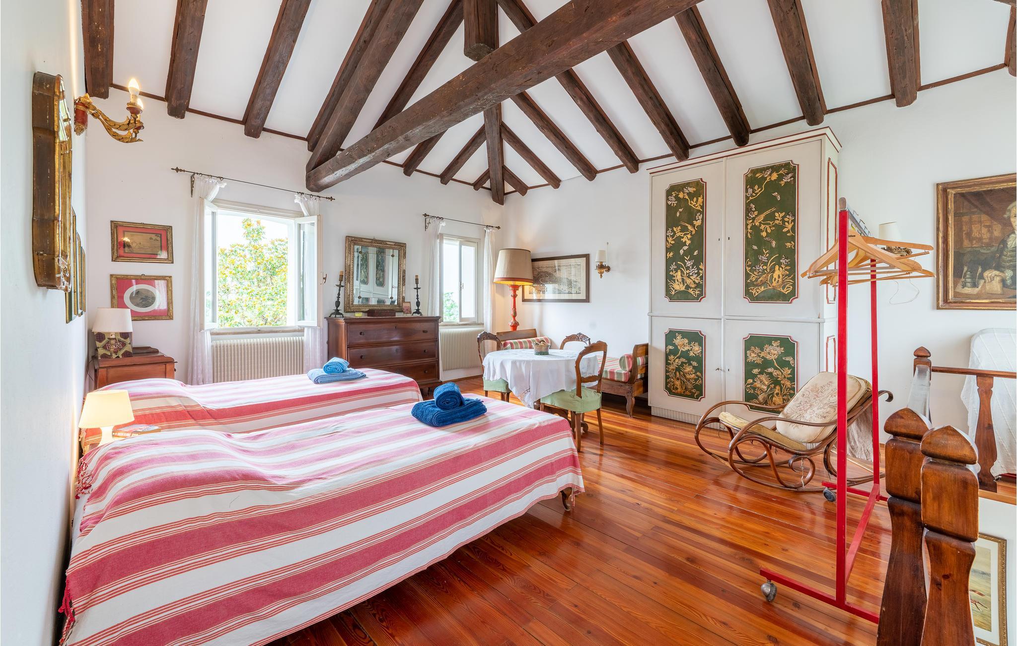 Omgeven door de weelderige natuur van de heuvels en met een prachtig uitzicht op de vlakte beneden, biedt dit vakantiehuis op 2 km van Montebelluna u niet alleen de mogelijkheid om te ontspannen, maar ook om een uitgangspunt te hebben om de betoverende regio Veneto te verkennen, van het nabijgelegen Montebelluna en Asolo, tot de mooiste kunststeden: Venetië (50 km), Treviso (20 km), Padua (50 km), Vicenza (55 km) ... of de hoofdsteden van Prosecco DOCG: Valdobbiadene ( 20 km) en Conegliano (30 km). In de tuin, omgeven door bomen en bloemen, vindt u de juiste sfeer om te ontspannen met een goed boek, te zonnebaden of te dineren bij kaarslicht. Als u van geschiedenis en kunst houdt, kunt u een van de vele mooie steden en middeleeuwse dorpen in de omgeving ontdekken: Bassano del Grappa, Marostica, Asolo, Cittadella, Feltre, Castelfranco, Cison of Valmarin of volg verschillende routes om de Venetiaanse villa's te bezoeken, uniek in de wereld, met hun prachtige architectuur en weelderige tuinen. Het gebied is een afwisseling van rivieren, meren, heuvels en bergen (op 50 km liggen de Dolomieten) en sporters kunnen er verschillende activiteiten beoefenen: trekking, nordic walking, mountainbiken, fietsen, canyoning, rafting, kanoën, skiën, langlaufen, paragliding, golf. Hier heeft u de mogelijkheid om een dagje wandelen of skiën in de Dolomieten af te wisselen met een dagje ontspanning aan zee (Jesolo ligt op slechts 70 km afstand). Vanaf hier kunt u de Valdobbiadene en Conegliano bereiken met de auto of de fiets door de heuvels waar de beroemde Prosecco wordt geproduceerd, in een opeenvolging van prachtige landschappen met wijngaarden, boerderijen en wijnkelders waar u de uitstekende wijn van deze regio kunt proeven, vergezeld van lokale gastronomische specialiteiten. Een slaapkamer is een doorgangskamer.
