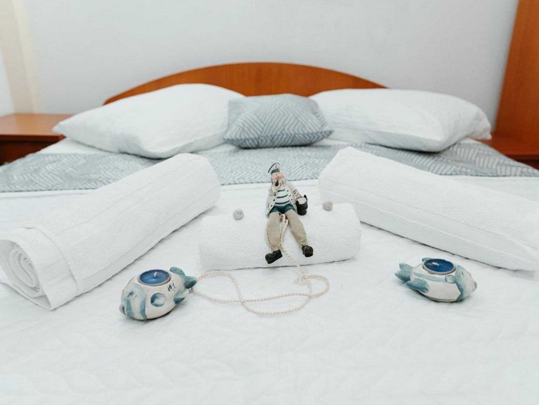 Ferienwohnung bietet Platz für 3 Gäste. Die Betten sind in Schlafzimmern, die es 1 gibt, und in Wohnzimmer, innerhalb einer Gesamtfläche von 35m2, angeordnet. Die Gäste haben eine eigene Terrasse zur Verfügung, auf der sie in warmen Sommernächten genießen können. Das Apartment bietet Meerblick. Es ist erlaubt, Speisen auf dem Gemeinschafts-Grill vorzubereiten. In der Unterkunftseinheit besteht die Möglichkeit des Mitbringens von Haustieren gegen Aufpreis. IM PREIS INBEGRIFFEN: Kurtaxe, Endreinigung, Klimatisierung, Parkplatz, Internet, Kinderbett, Bügeleisen, Bügelbrett, Föhn, tragbarer Grill, Sonnenschirm, Liegestühle. VERBINDLICHE ZUSÄTZLICHE KOSTEN: Aufzahlung für Kurzaufenthalte (prozentualer Zuschlag pro Nächtigungsanzahl: 30% - 1, 20% - 2, 10% - 3). UNVERBINDLICHE ZUSÄTZLICHE KOSTEN: Wäschewaschen (5,00 € Waschen), Bootsanlegeplatz (10,00 € pro Nacht), Haustiere (10,00 € pro Nacht), Zusatzbett (10,00 € pro Nacht). Die Verfügbarkeit zusätzlicher Dienstleistungen in Ihrem reservierten Termin und die Preise derselben (falls nicht aufgeführt) müssen im Voraus überprüft werden. Zusätzliche Dienstleistungen die in der Zahlungsaufforderung nicht aufgeführt sind werden direkt beim Vermieter bezahlt, angenommen der Gast nutzt auch diese. Ermäßigung auf den Grundpreis: Gratistag 14=13 (bei einem Aufenthalt von 14 Tagen oder mehr erhalten Sie einen Gratistag für den Aufenthalt bis 31.12.26).