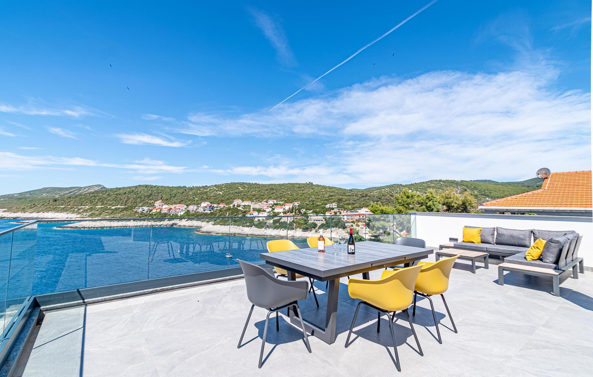 Deze ruime en moderne villa verwelkomt je met een prachtig uitzicht op de zee en de kust van het eiland Korcula.