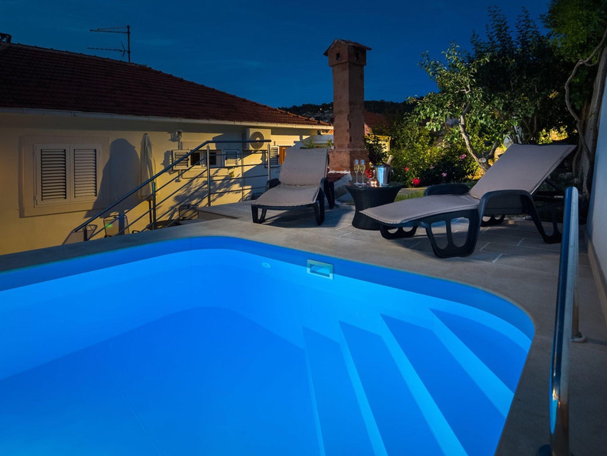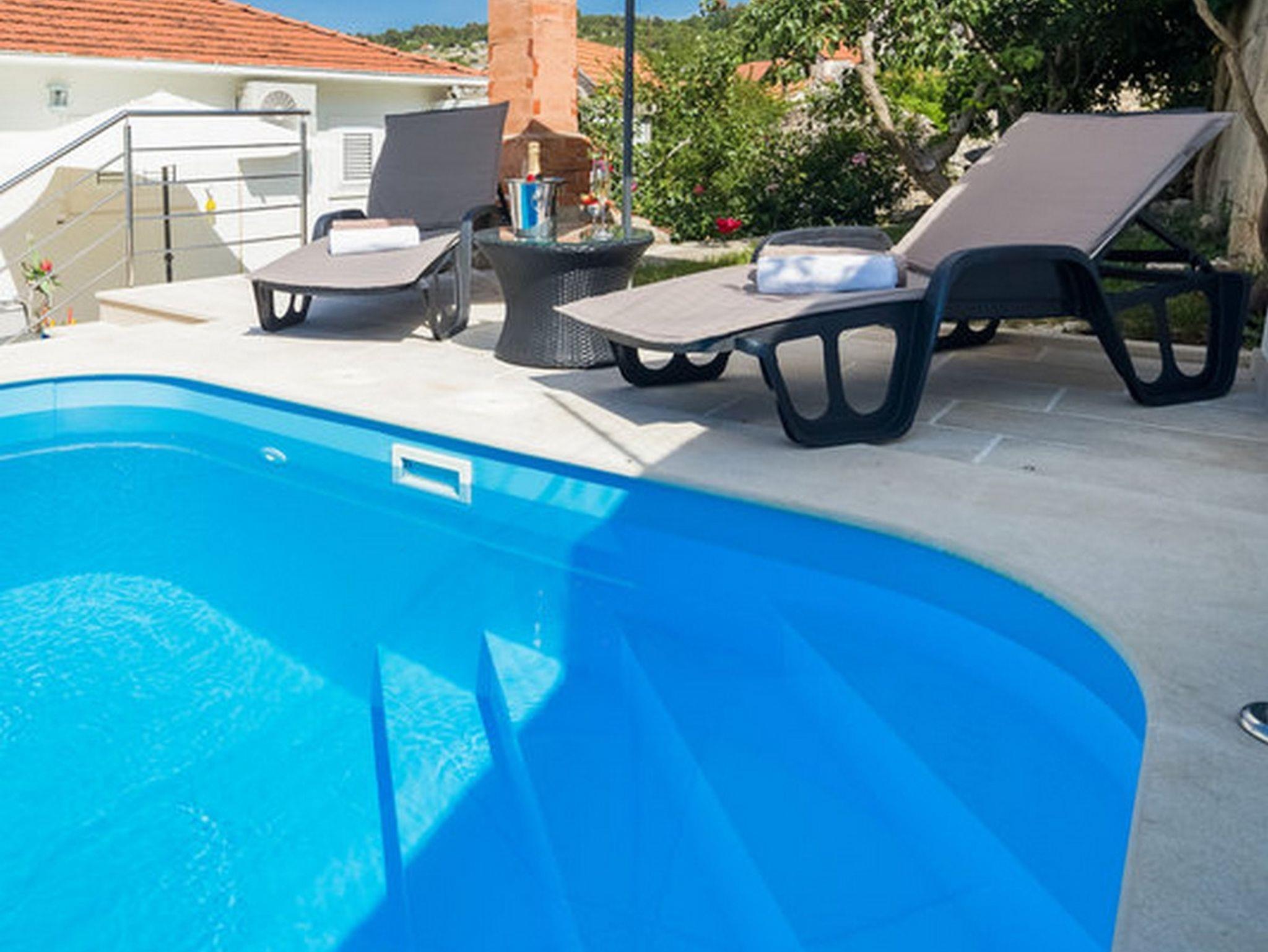 Haus bietet Platz für 8 Gäste. Die Betten sind in Schlafzimmern, die es 3 gibt, und in Wohnzimmer, innerhalb einer Gesamtfläche von 79m2, angeordnet. Die Gäste haben eine eigene Terrasse zur Verfügung, auf der sie in warmen Sommernächten genießen können. Für vollen Genuss und Entspannung gibt es einen privaten Grill für Gäste dieser Unterkunft. Während ihres Aufenthalts können sich Gäste im privaten Schwimmbad entspannen. Räume der gebuchten Unterkunftseinheit werden nicht in eine Ganze verbunden. IM PREIS INBEGRIFFEN: Kurtaxe, Endreinigung, Klimatisierung, Pool, Parkplatz, Internet, Bügeleisen, Bügelbrett, Föhn. Die Verfügbarkeit zusätzlicher Dienstleistungen in Ihrem reservierten Termin und die Preise derselben (falls nicht aufgeführt) müssen im Voraus überprüft werden. Zusätzliche Dienstleistungen die in der Zahlungsaufforderung nicht aufgeführt sind werden direkt beim Vermieter bezahlt, angenommen der Gast nutzt auch diese.