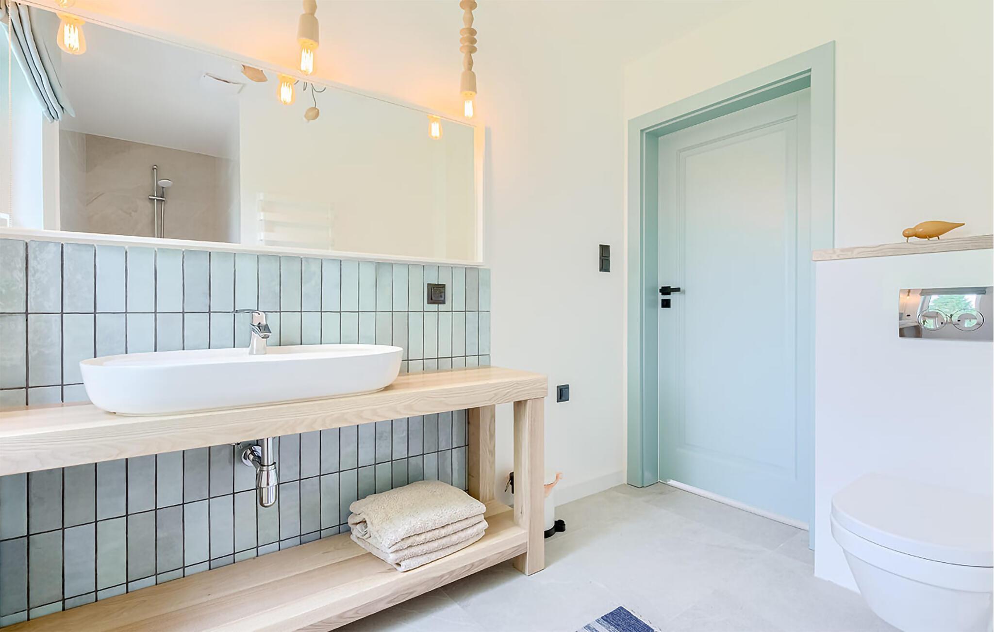 Een lichte en moderne vakantiewoning met een bijzondere plattegrond die de woonruimte een luchtig gevoel van ruimte en openheid geeft. Het opvallende woonconcept stimuleert communicatie en gezelligheid: niemand hoeft alleen in de keuken te staan terwijl de rest van de familie gezellig aan het kaarten is. Een trap leidt naar de eerste verdieping en dus ook naar de galerij, wat de communicatie ook vergemakkelijkt. Ontbijt op het omheinde terras en geniet van de eerste zonnestralen. Als je terugkomt van een excursie, kunnen je kinderen rondrennen op het gazon terwijl jij het avondeten bereidt.