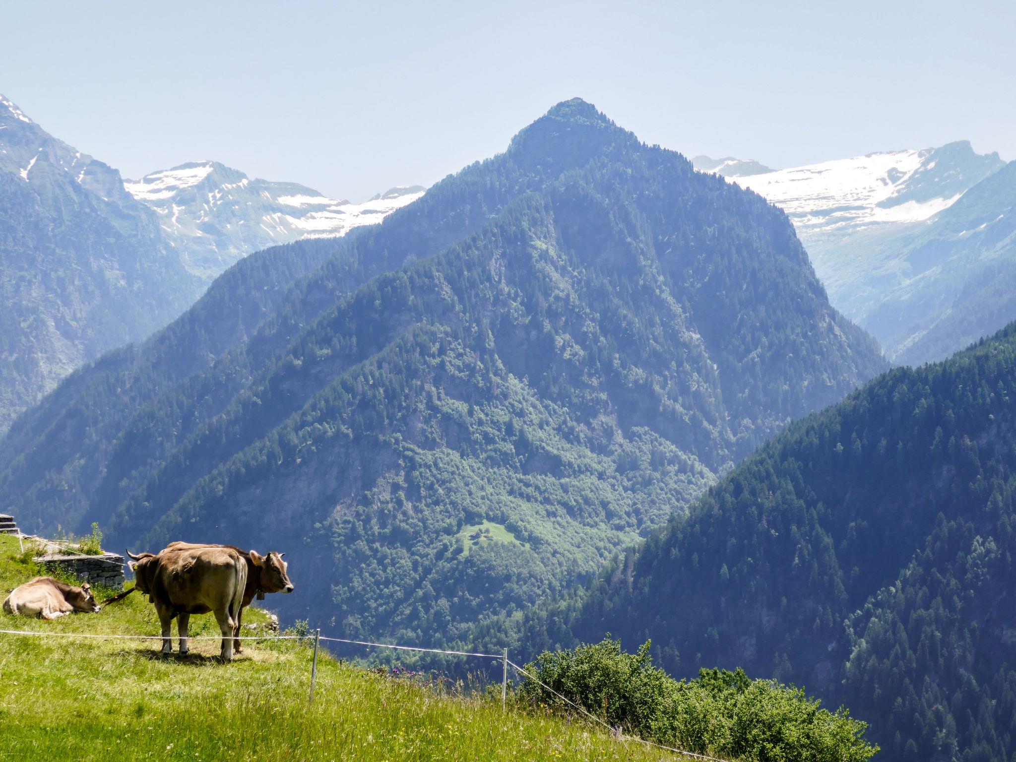 "Rustico Pamela", 2-kamers cottage 60 m2 op 2 verdiepingen, op het zuiden gelegen. Ruim, gedeeltelijk afgeschuinde daken, eenvoudig en rustiek ingericht: open woon-/eetkamer met zwedenkachel, Sat-TV, Flatscreen TV en radio. Uitgang naar het terras, pergola. Open keuken (Gasfornuis, 4 kookpitten (vlammen), fondue Set (kaas)) met eethoek. Douche/WC. Houtverwarming. Solarstroom. Bovenverdieping: (trap zonder leuning) open galerij met afgeschuinde daken met 1 2-pers bed (1 x 140 cm, lengte 200 cm), 1 2-pers bed (1 x 160 cm, lengte 200 cm). Terras. Terrasmeubelen, barbecue, ligstoelen (2). Mooi panoramazicht op de bergen, het dal en het landschap. Ter beschikking: kinderstoel, kinderbed tot 2 jaar (extra). Geschikt voor families. Rookvrij huis. Maximaal 1 huisdier/hond toegestaan. In plaats van een afgesloten slaapkamer bevinden sommige slaapgedeeltes zich in een open ruimte (galerij, nis, etc.). NL-00002080