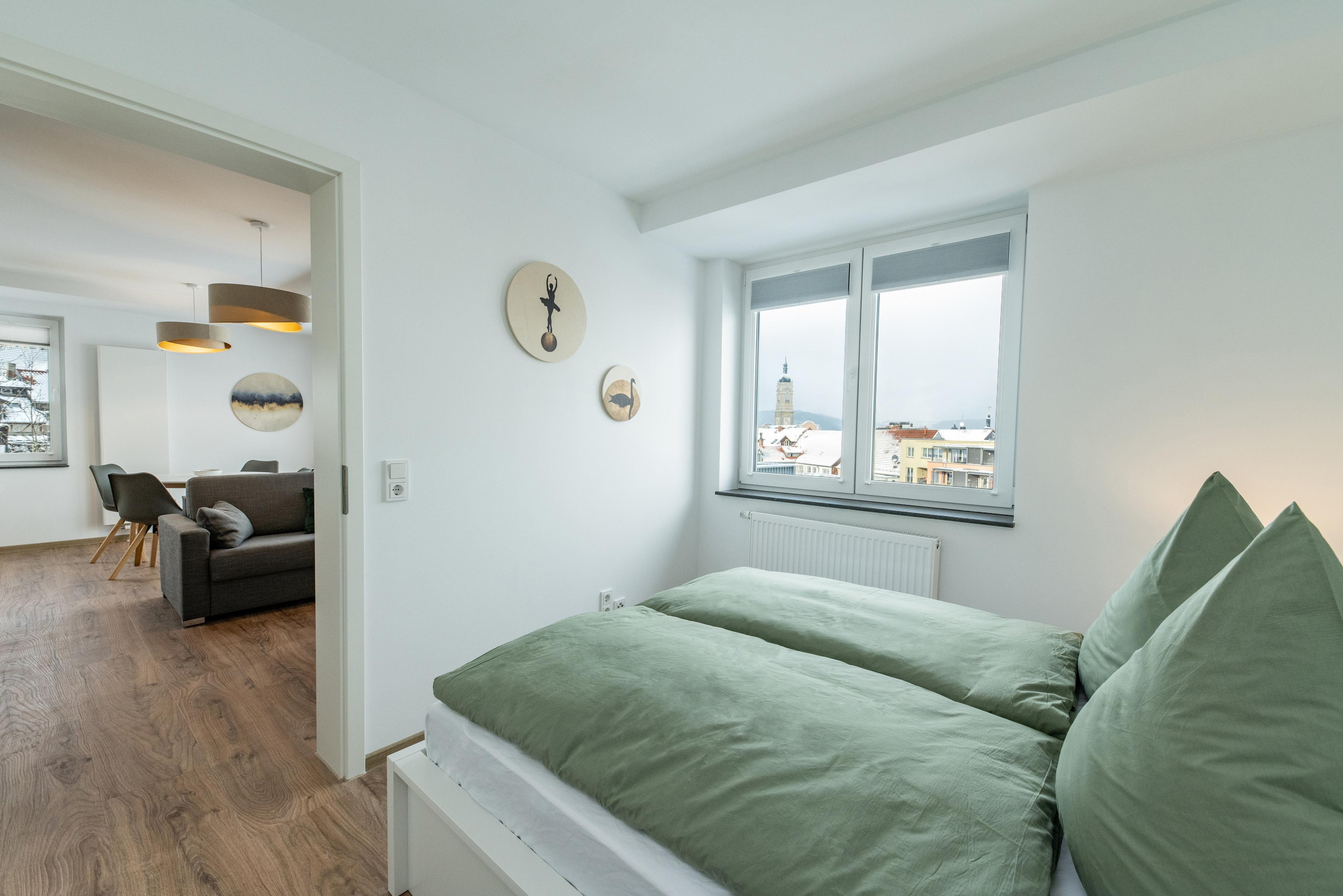 Unser Zwei-Zimmer-Apartment befindet sich im 3. Stock und bietet ein Wohnzimmer mit Küche und Essbereich, ein Schlafzimmer und ein modernes Bad. Ein Aufzug ermöglicht die Wohnung barrierefrei zu erreichen. Das hochwertige Schlafsofa ermöglicht die Aufbettung für 2 Personen nach Absprache, sodass maximal vier Erwachsene das Apartment bewohnen können.