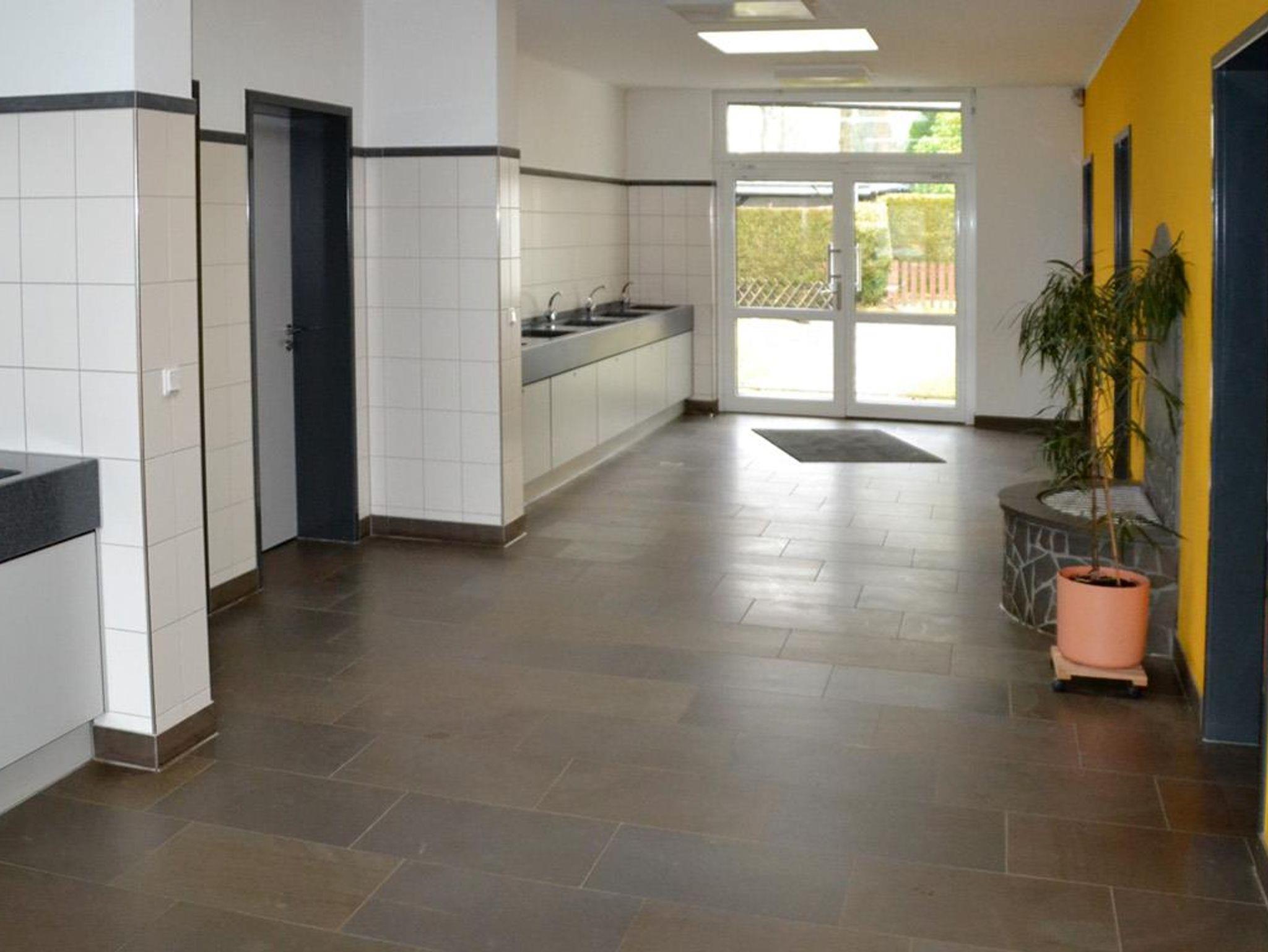 Die Sanitäranlagen befinden sich im gegenüberliegenden Sanitärgebäude.