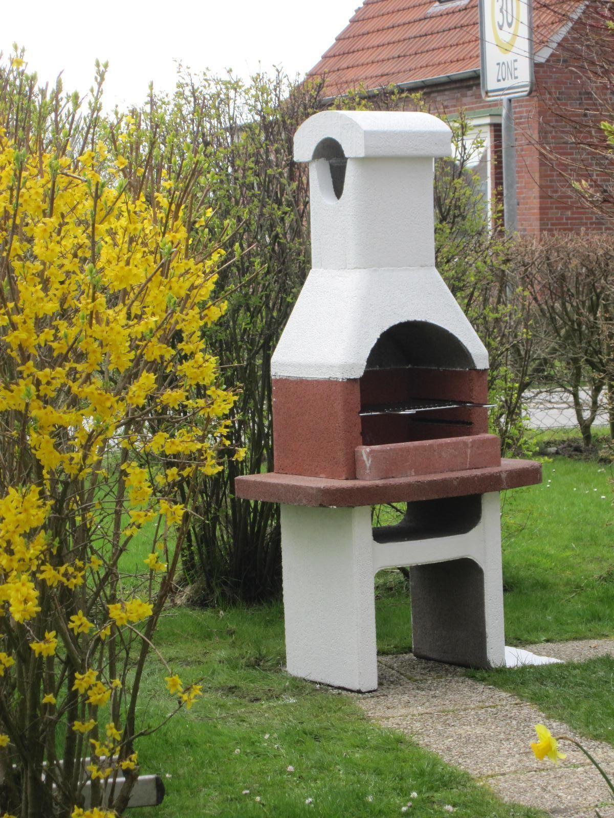 The garden has a terrace with garden furniture, a canopy beach chair and a grill.