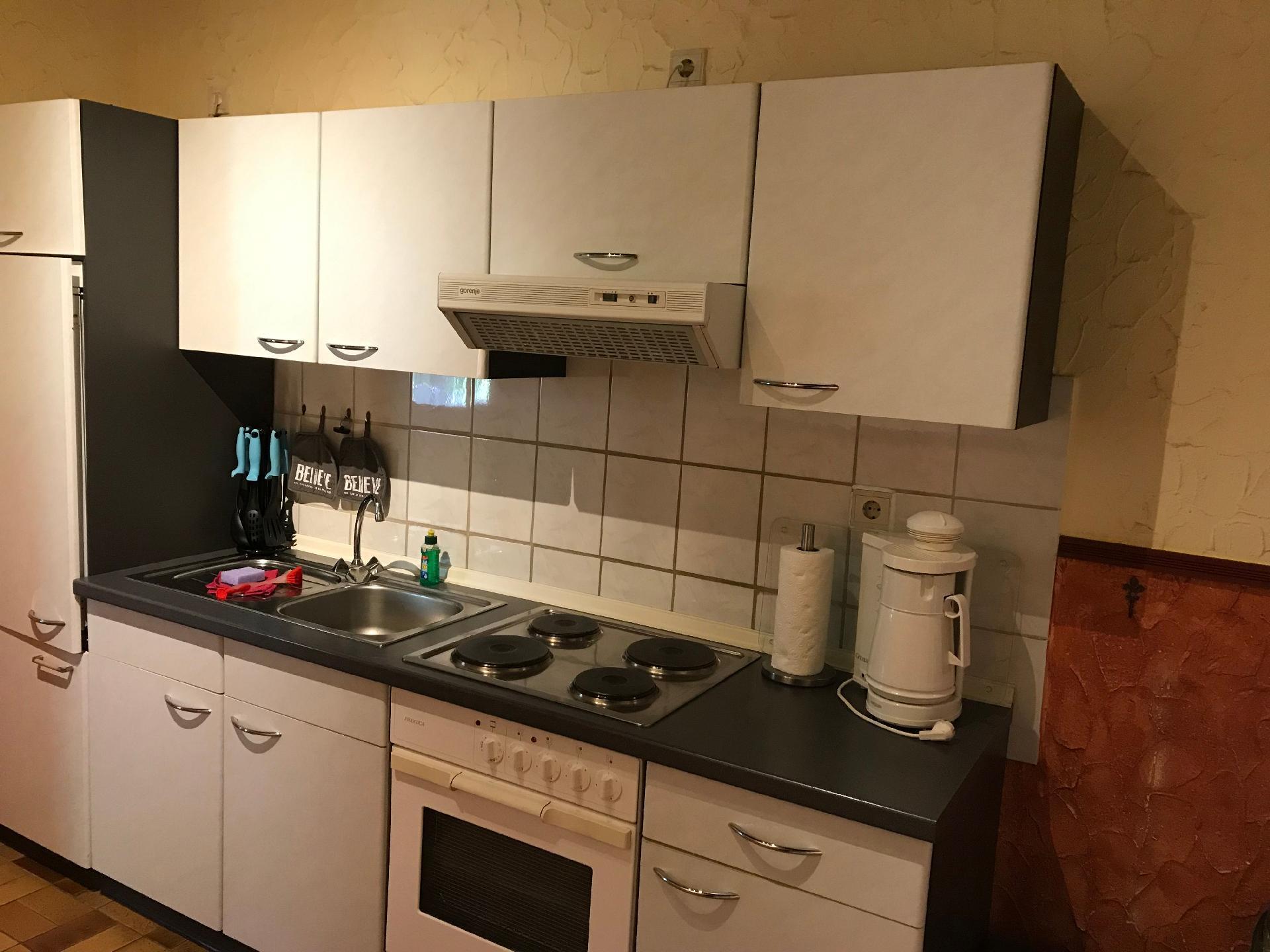 Kitchen: Coffee machine; Fridge; Oven; Stove; Toaster; Water boiler