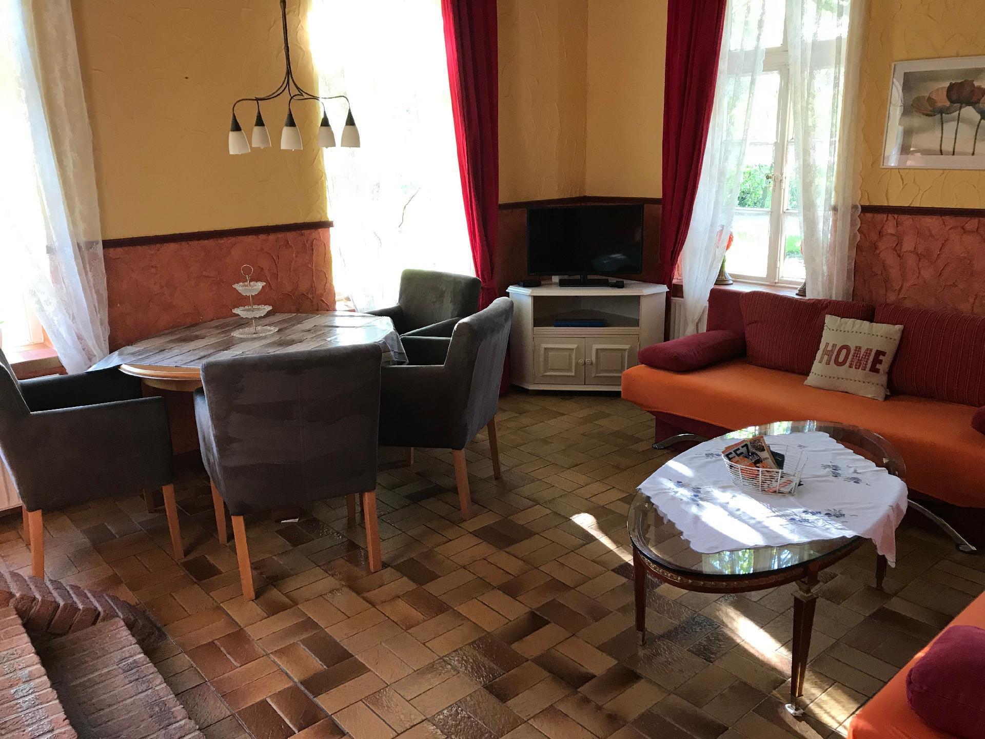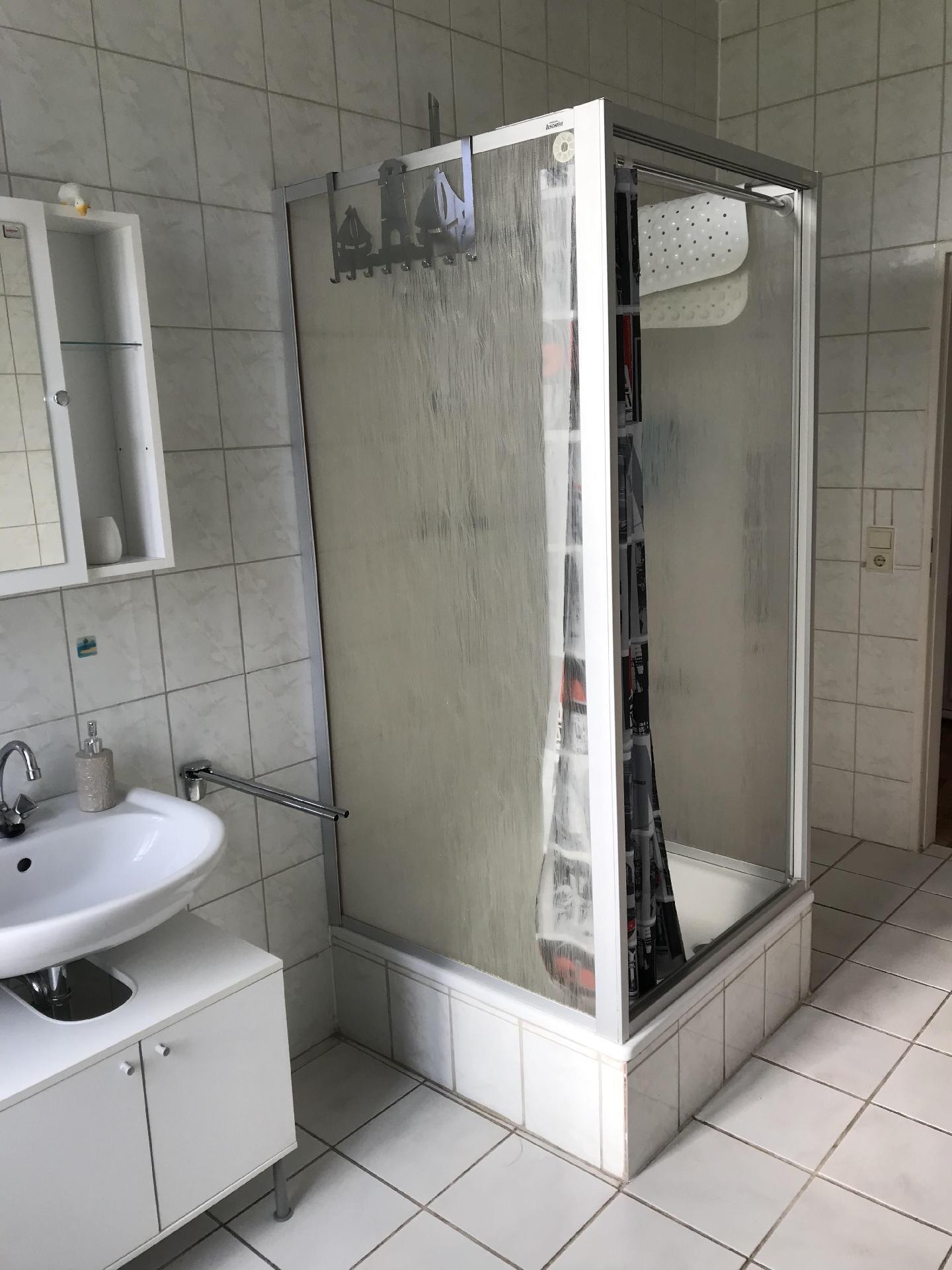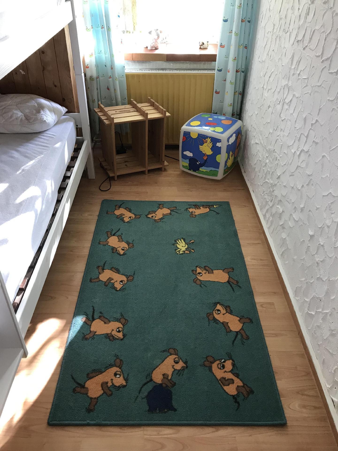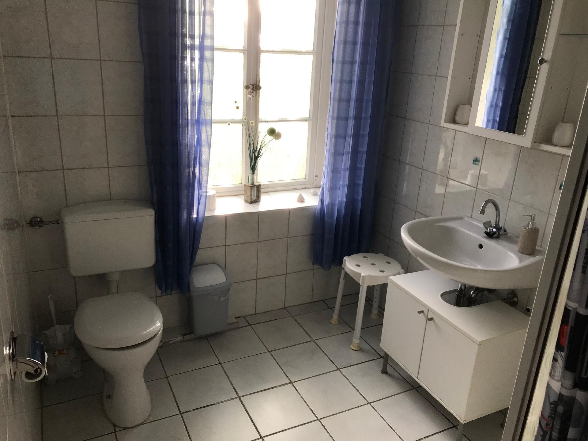 Welcome to your holiday accommodation on the ground floor. The 60m² apartment has two bedrooms, a living room, a kitchen and a bathroom with a shower. You can sit on the sofa in the living room, watch satellite TV or listen to the radio, or enjoy your meals at the dining table with four chairs. The kitchen is equipped with a kettle, coffee machine, hand mixer, stove, oven, toaster, fridge, crockery, cutlery, pots and pans. The first bedroom is furnished with a double bed with two individual mattresses, while the second has a bunk bed. You can store your clothing in the wardrobe. The bathroom is fitted with a shower, WC and washbasin. Children up to six years old stay free of charge. There is central heating with radiators in all rooms.