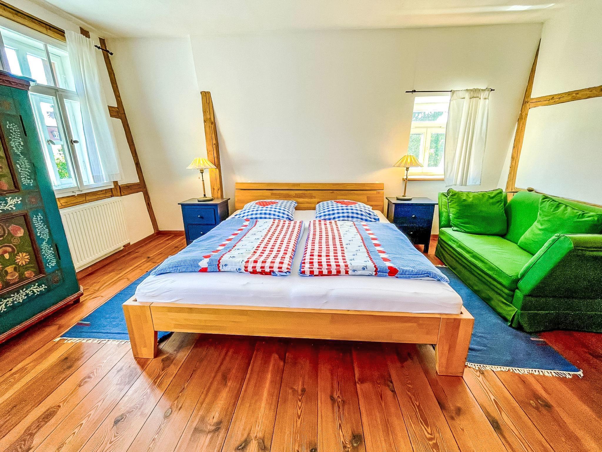 Heyda 15 km van Wurzen: Kasteel "Rittergut Heyda". Direct aan het meer. Voor medegebruik: park, tuin, ligweide. Kinderspeelplaats (glijbaan, schommel). Voor alleengebruik: tuin (omheind), ligweide. Terras (20 m2). In het huis: centrale verwarming. Roeiboot (ter plaatse overeen te komen), parkeerplaats bij het huis. Levensmiddelenwinkel 2 km, supermarkt 10 km, restaurant 3 km, bushalte 150 m, treinstation "Wurzen" 15 km, openluchtzwembad 10 km, overdekt zwembad 10 km. Manege 2 km. Auto noodzakelijk. Object referentie: DE9540.100.1 is gelegen op hetzelfde terrein.