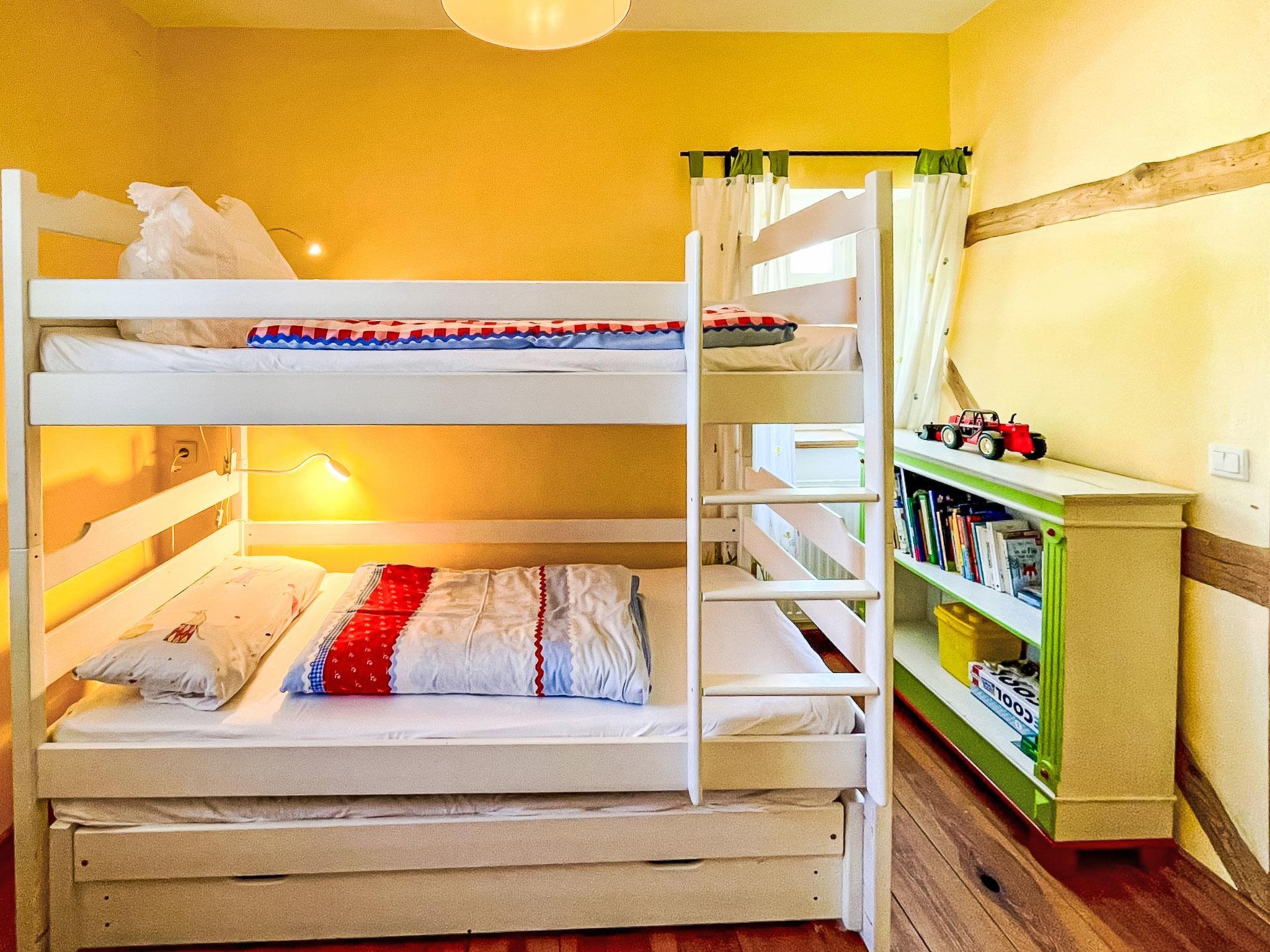 "Gärtnerhaus", huis 3-kamers 120 m2 op 2 verdiepingen, op de begane grond. Smaakvol en gezellig ingericht: woonkamer met zwedenkachel en Kabel-TV (Flatscreen TV). Open keuken (oven, afwasmachine, 4 keramische glas kookplaten, elektrische koffiemachine, kookeiland) met zwedenkachel en eethoek. Uitgang naar de tuin, naar het terras. Aparte WC, dubbele wastafels. Bovenverdieping: 1 2-pers. kamer (200 cm, lengte 220 cm). 1 kinderkamer met 1 x 2 stapelbedden (80 cm, lengte 180 cm). Bad/douche/WC, dubbele wastafels. Comfortabele inrichting in landelijke stijl. Terrasmeubelen, barbecue, ligstoelen (2). Ter beschikking: wasmachine, kinderstoel. Internet (Internet (WiFi), gratis). Rookvrij huis.